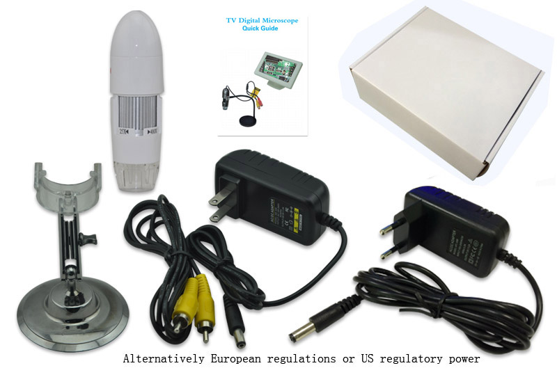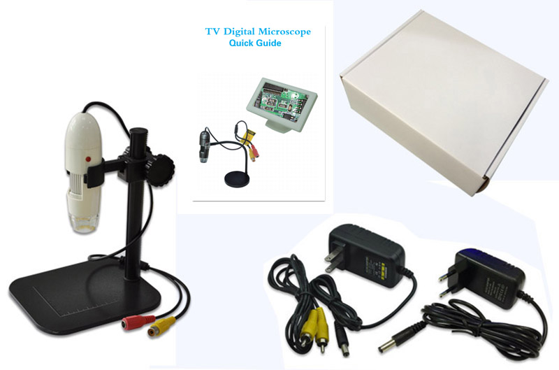 T01 25-400X TV digital microscope PAL dispensing machine probeConnected with TV, AV interface screen use, 25-400 times, with plastic lifting bracket, manual focus, Optical magnification 50x and 200x, full-screen digital magnification 400x, It can display full-screen real-time living biological images on the display screen, Digital microscopes are widely used in: industrial inspection, computer component inspection, telecommunications module inspection, scientific teaching tools, Children explore microscopic experience, laboratory research, medical analysis, school research tools, insect anatomy, plant anatomy, Skin inspection, hair inspection, textile inspection, jewelry inspection, collection inspection, antique inspection, ceramic inspection, printing inspection, PCB board inspection, etc.